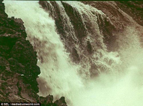 | Đoạn phim cho thấy một thác nước đã đổ xuống hồ chứa sau vụ nổ bom tạo ra một hồ khổng lồ |