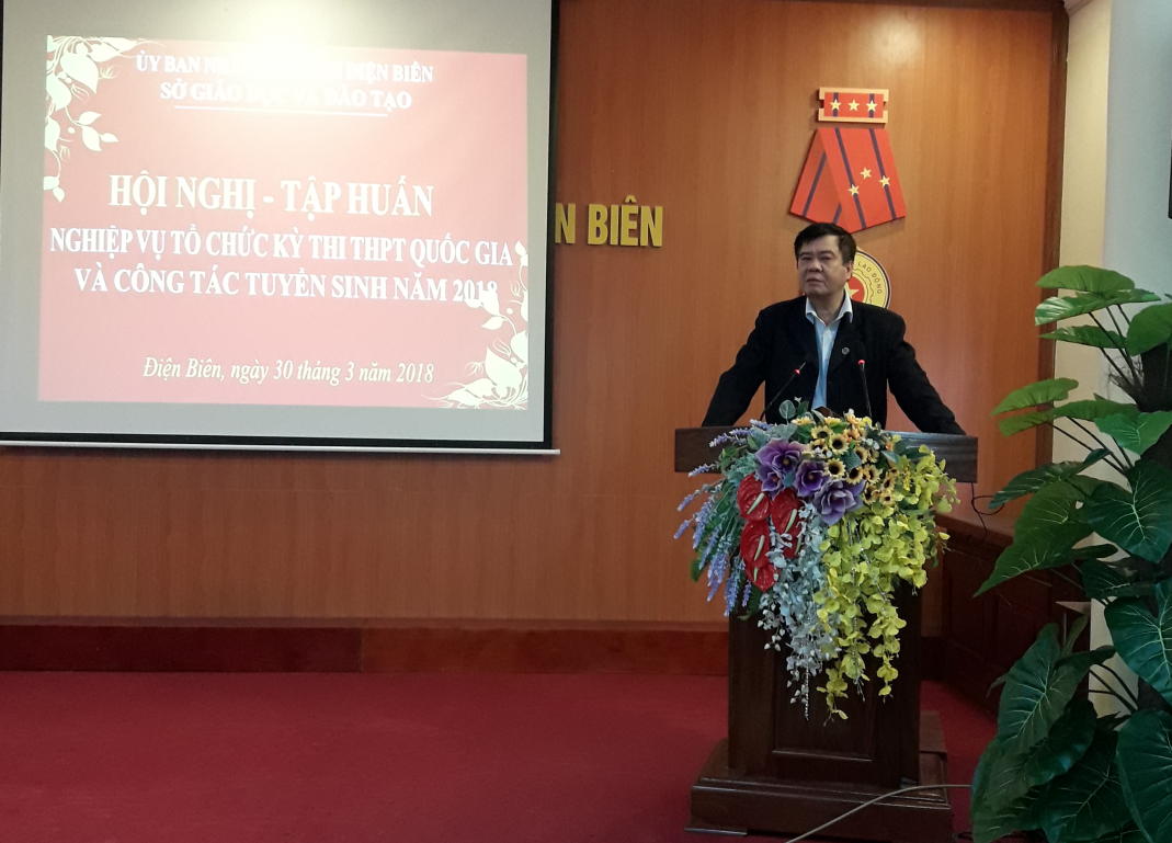 Đồng chí Nguyễn Văn Kiên-Phó Giám đốc phụ trách Sở Giaos dục và Đào tạo phát biểu chỉ đạo Hội nghị - tập huấn nghiệp vụ tổ chức thi Kỳ thi THPT quốc gia năm 2018 tiếp tục được Bộ Giáo dục và Đào tạo giao về cho các địa phương trực tiếp chỉ đạo, tổ chức. Mỗi tỉnh, thành có cụm thi do Sở Giáo dục và Đào tạo chủ trì cùng với sự phối hợp của các trường đại học, cao đẳng tổ chức thi.