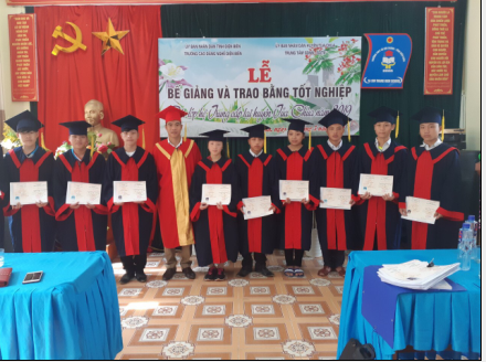 Sáng ngày 22 tháng 5 năm 2019 Trường Cao đẳng Nghề tỉnh Điện Biên phối hợp với Trung tâm GDNN-GDTX huyện Tủa Chùa tổ chức Lễ bế giảng và trao bằng cho học viên các lớp trung cấp: Lâm sinh – Khóa 13 Công tác Xã hội – Khóa 2 Công nghệ thông tin – Khóa 8 , Kế toán Doanh nghiệp – Khóa 7. 1 số hình ảnh lễ trao bằng tốt nghiệp Được khai giảng vào ngày 27/12/2017 với tổng số học viên ban đầu của 4 lớp liên kết là 116 học viên, trải qua gần 2 năm học tập số học viên theo học đến cuối khóa là 92 học viên, tổng số học viên đủ điều kiện thi tốt nghiệp là 71 học viên, tổng số học viên được công nhận tốt nghiệp trong đợt này là 69 học viên trong đó số học viên xếp loại khá là: 42hv chiếm 60,8 %, số học viên xếp loại TB – Khá: 24 hv chiếm 34,7%, số học viên xếp loại TB: 3 hv chiếm 4,5 %. Tới dự Lễ bế giảng và trao Bằng tốt nghiệp có đồng chí Bùi Thị Thu Hiền - Phó Hiệu trưởng trường Cao đẳng Nghề tỉnh Điện Biên, đồng chí Lê Sỹ Tường – Giám đốc Trung tâm GDNN – GDTX huyện Tủa Chùa, đồng chí Trần Huy Hoàng – Hiệu trưởng Trường THCS – THPT Tả Sìn Thàng ,các thầy cô giáo trực tiếp giảng dạy lớp học, các thầy cô giáo Trung tâm GDNN – GDTX , các thầy cô giáo trường THCS – THPT Tả Sìn Thàng và Toàn bộ học viên các 4 lớp trung cấp tại huyện Tủa Chùa .