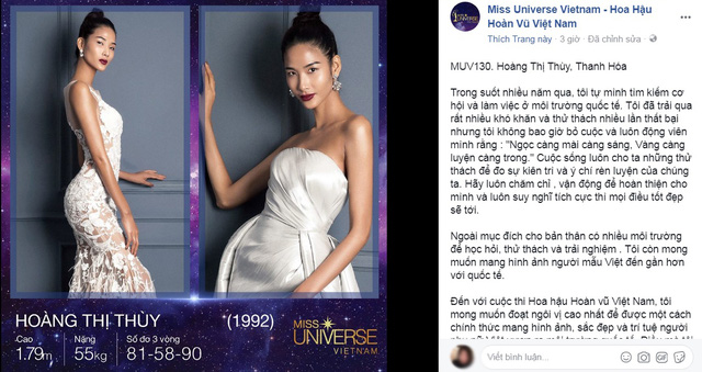 Sau nhiều lần “úp mở” việc tham gia vào cuộc thi sắc đẹp Hoa hậu Hoàn vũ Việt Nam 2017, tối ngày 31/8 trên trang chính thức Miss Universe Vietnam đã đăng tải đầy đủ hình ảnh cũng như số báo danh của Hoàng Thùy trong hồ sơ tham dự.