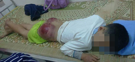 Theo hồ sơ bệnh án, cháu L. nhập viện trong tình trạng hoảng sợ, khóc, đau nhức ở hai bên mông và mu bàn tay. Qua kiểm tra vùng mông, hai bên sưng nề, bầm tím, tổ chức da, cơ bị dập nát và rỉ máu, diện tích tổn thương mỗi bên là 19x 20 cm.