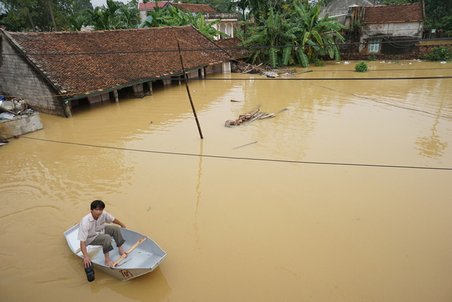 Cảnh đường đi lối lại trong làng đều biến thành "đường thuỷ".